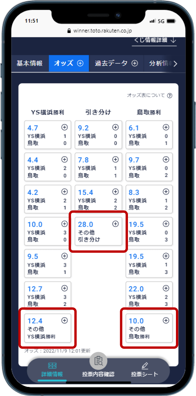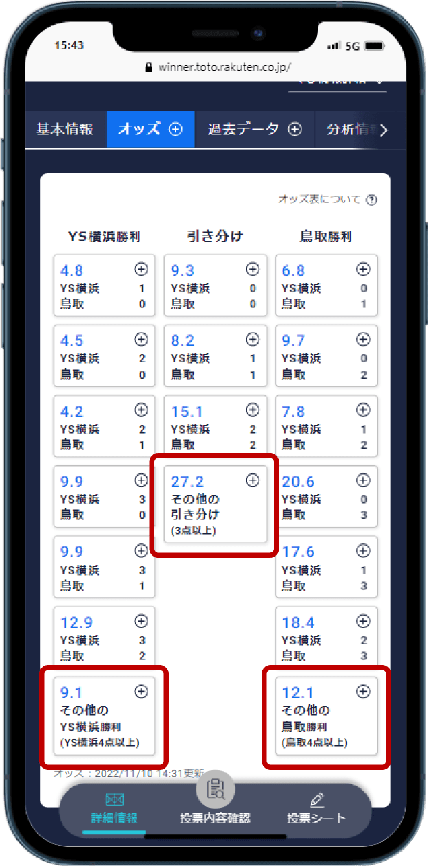 WINNERでサッカーの試合詳細の選択肢「その他XX勝利」「その他引き分け」の