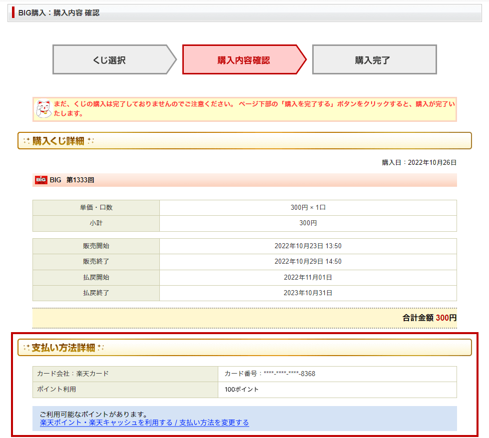 BIG系くじ購入時の