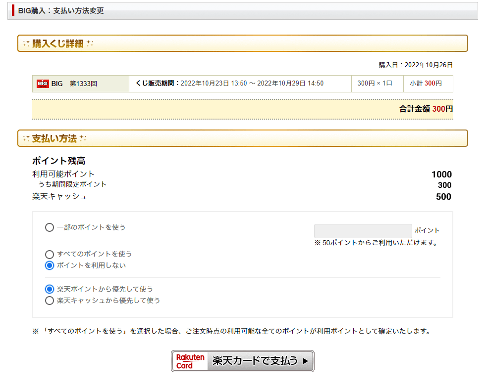 BIG/totoでも楽天ポイントを使って