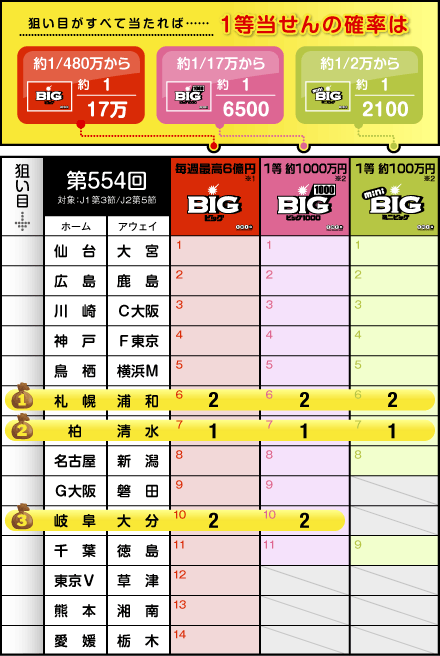 トップページ > totoBIG当せん虎の巻 > totoONEコラム > totoONEコラム一覧(2012年) > 03月23日 第552回BIGは6億円長者が2口誕生!