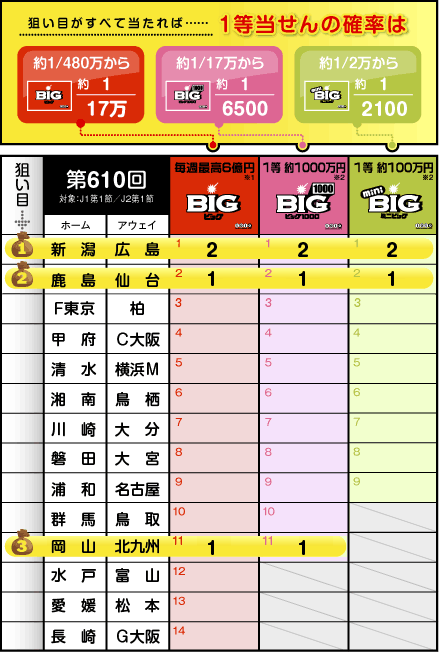 今季初回となった第609回の結果は、いかがだったでしょうか。今季からBIGでは、5つはずれの6等が導入されました。第609回はBIG、totoともに1等こそ誕生しませんでしたが、BIGの6等は約9万口誕生。早速、新制度で受益した方も多かったと思います。当せんした方も惜しくも外れてしまった方も、1等当せんに向けては希望を持ち続ける姿勢が大事になりそうですよ。