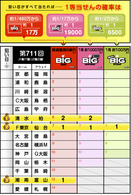 相性面だけでなく、チーム状況でも好対照な両チーム。湘南の勝利を見込む「1」が鉄板と言えそうだ。
