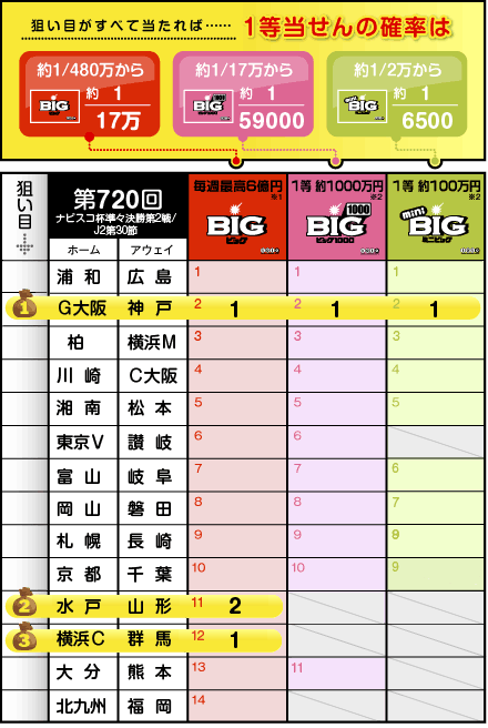 3日時点の投票率で約58%の支持を獲得し、優位と見られているG大阪。ここは前評判が示しているように、ホームチーム勝利の「1」を確実に押さえておくべきだろう。