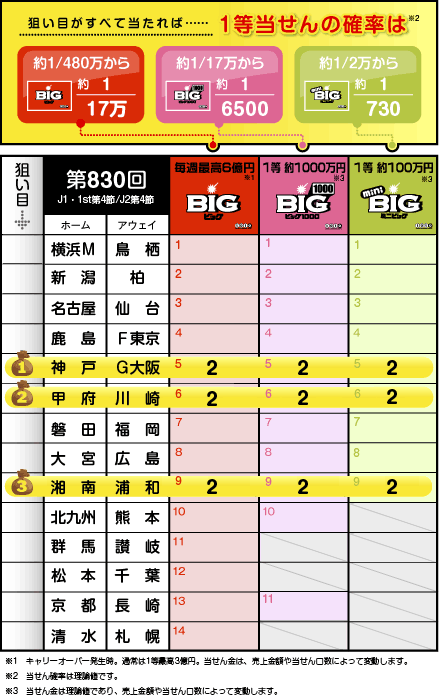 チーム状況だけでなく、通算対戦成績でも21勝2分6敗と浦和に分があることから、ここはアウェイチーム勝利の「2」を確実に押さえておきたい