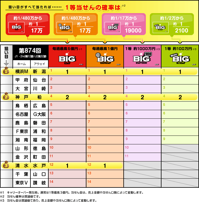 両者の通算対戦成績は、柏が25勝5分14敗と大きく勝ち越し。14日時点の投票率でも柏が優位と見られているとおり、ここはアウェイチーム勝利の「2」が狙い目と言えそうだ。