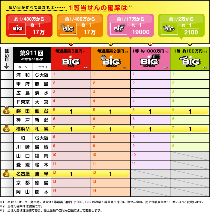 さて、第911回のBIGに向けては約43億2000万円のキャリーオーバーが発生しており、高額当せんのチャンスがあります。BIGを買い、愛知県のパワースポット巡りをして金運アップを祈願し、グランパスの試合を観戦、なんていう週末の過ごし方はいかがでしょうか。