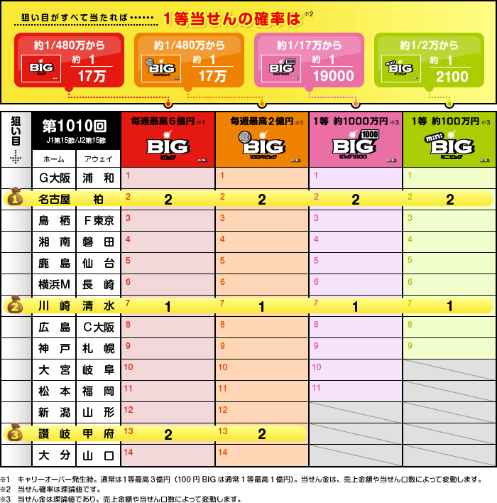 今季J1に復帰した名古屋だが、現状は「出口の見えないトンネルを彷徨い続けている」といったところ。豊田スタジアムに乗り込む柏が勝ち点3を手にする「2」をマークしておけば、当せんがグッと近付くはずだ。
