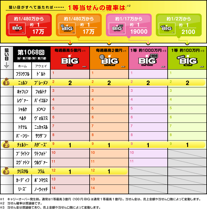 さて、次回のBIGは第1068回です。現在、約3億3800万円のキャリーオーバーが発生しており、高額当せんのチャンスがあります。この機会にぜひチャレンジしてみてください。