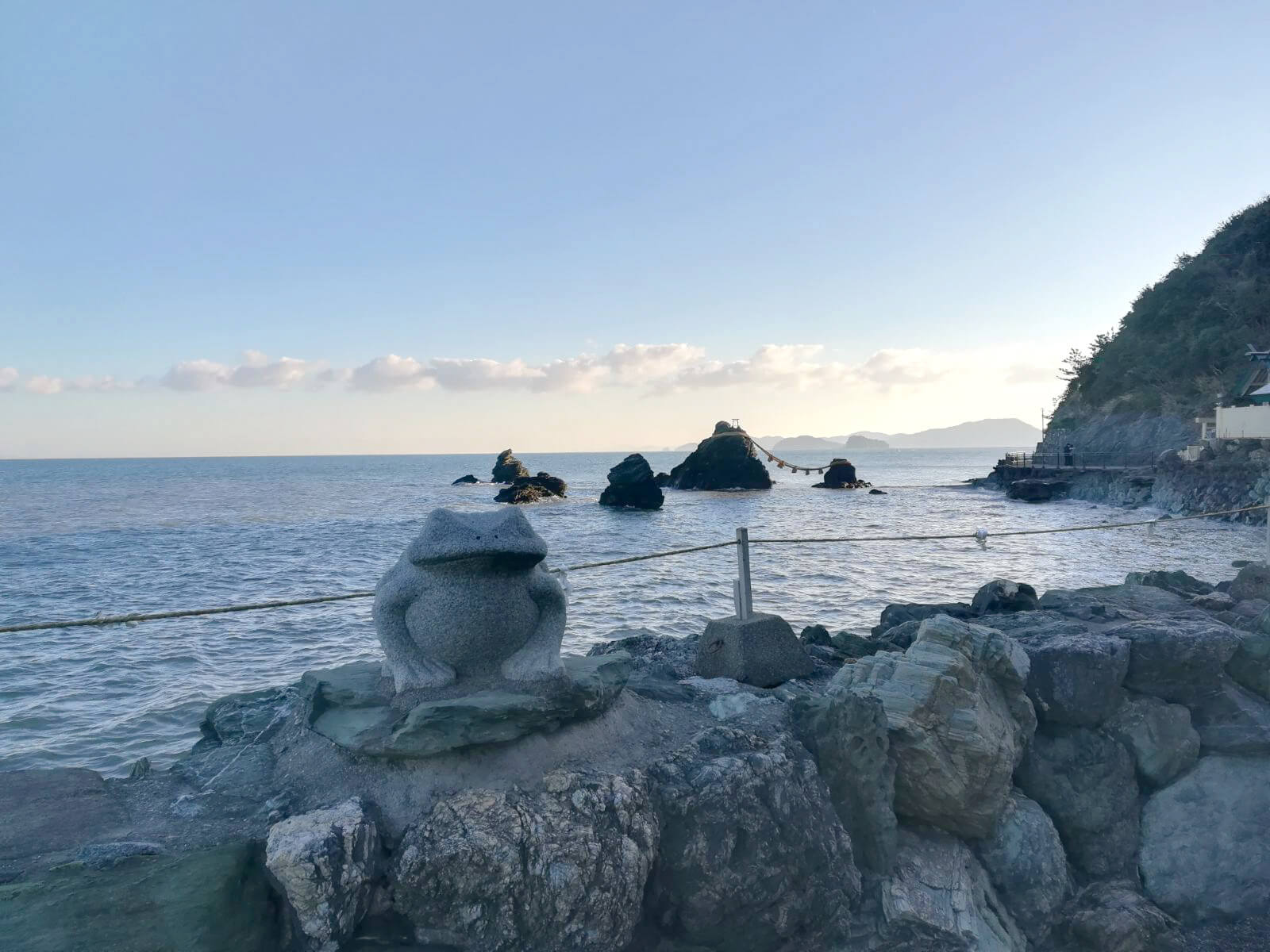 御祭神のお使いとされる二見蛙。様々な場所に蛙が配置されていて、